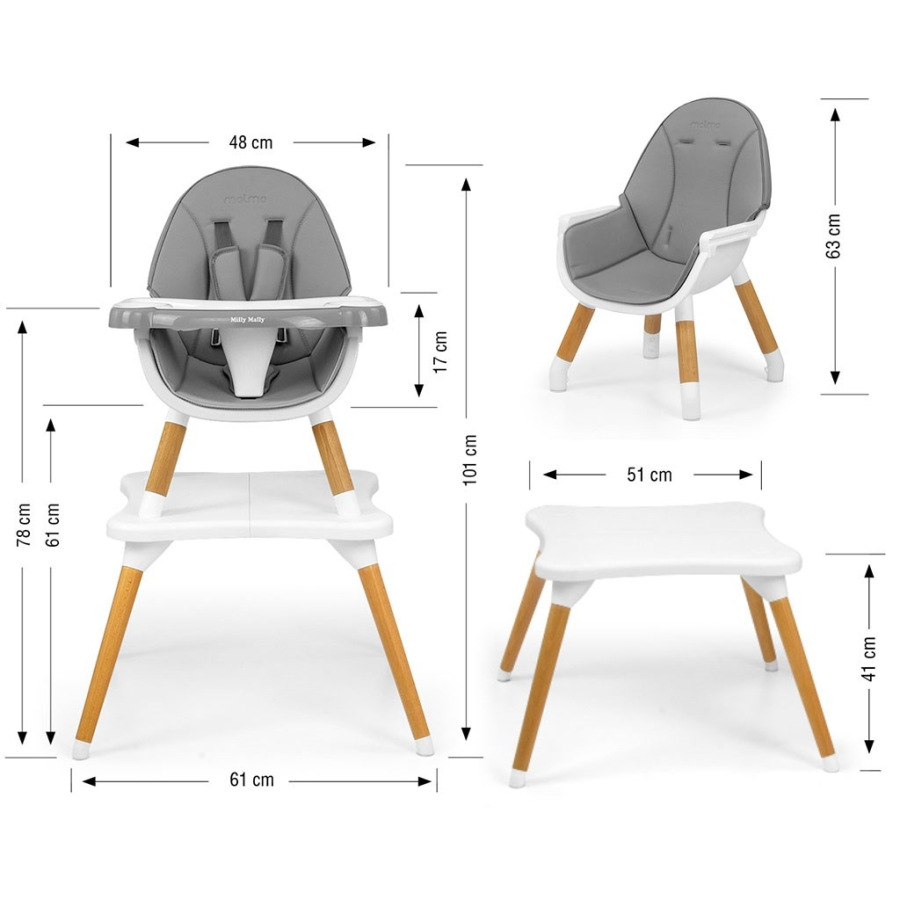 Jedálenská stolička Milly Mally 2v1 Malmo grey
