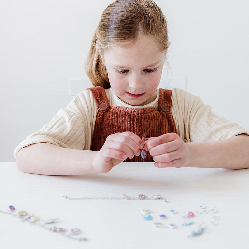 Obsahuje: 24x kovový krúžok, 2x retiazkový náramok, 40x puffy samolepky s trblietkami a návod.