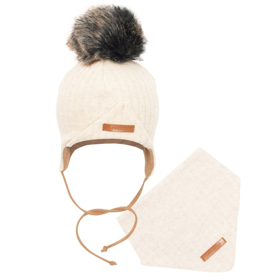 Jesenná dojčenská čiapočka so šatkou na krk New Baby Special One béžová 68 (4-6m)