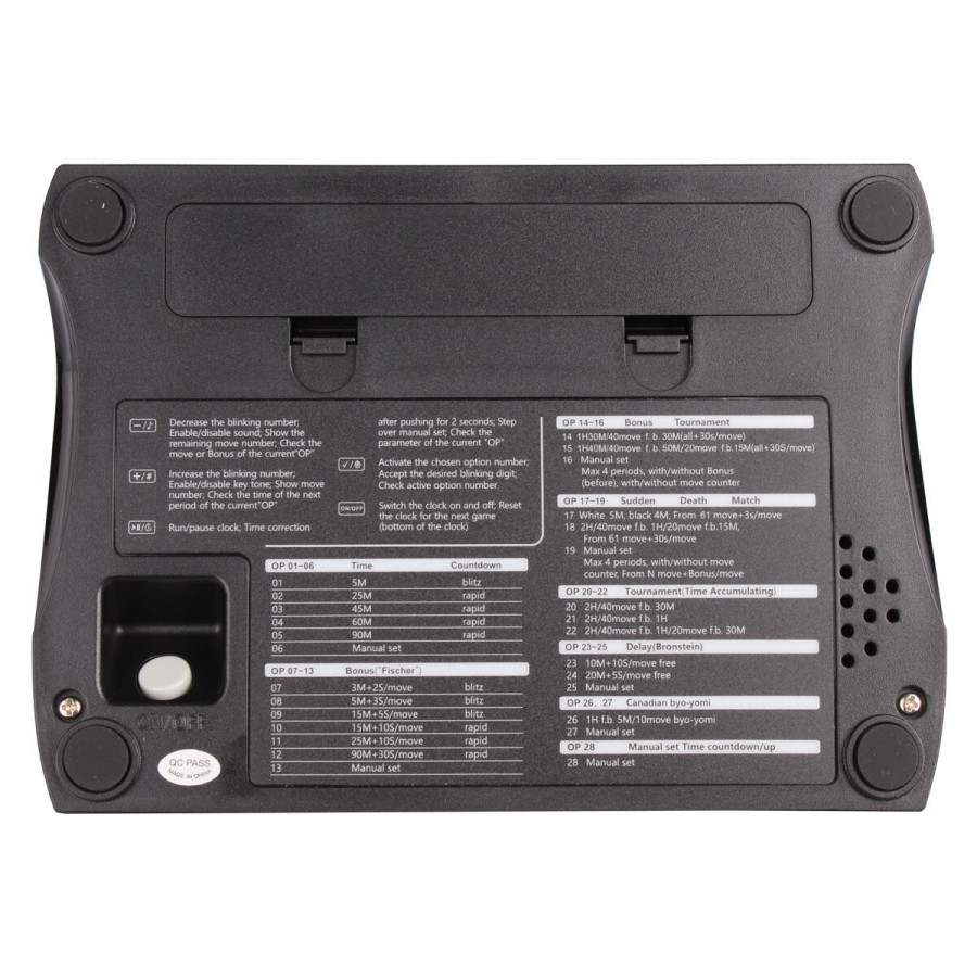 Digitálne hodiny JUNSD JS242A pre šachových hráčov všetkých úrovní - od úplných začiatočníkov až po profesionálov. Hodiny vyrobené z odolného plastu sa ľahko ovládajú a ich nastavenie je jednoduché a intuitívne. Napriek svojej malej veľkosti ponúka veľký a prehľadný LCD displej. Napájané sú dvoma batériami AA, ktoré sú súčasťou balenia. - materiál: plast