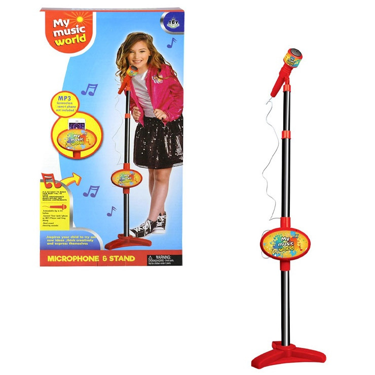 Skvelá zábava pre malých spevákov je mikrofón na batérie, ku ktorému je možné pripojiť externé audio zariadenie. Staň sa hviezdou pódií. Pripoj k riadiacej jednotke stojanu MP3 prehrávač alebo chytrý mobilný telefón a spievaj spoločne so svojím obľúbeným spevákom alebo speváčkou známe pesničky. Výška stojanu cca 105 cm.