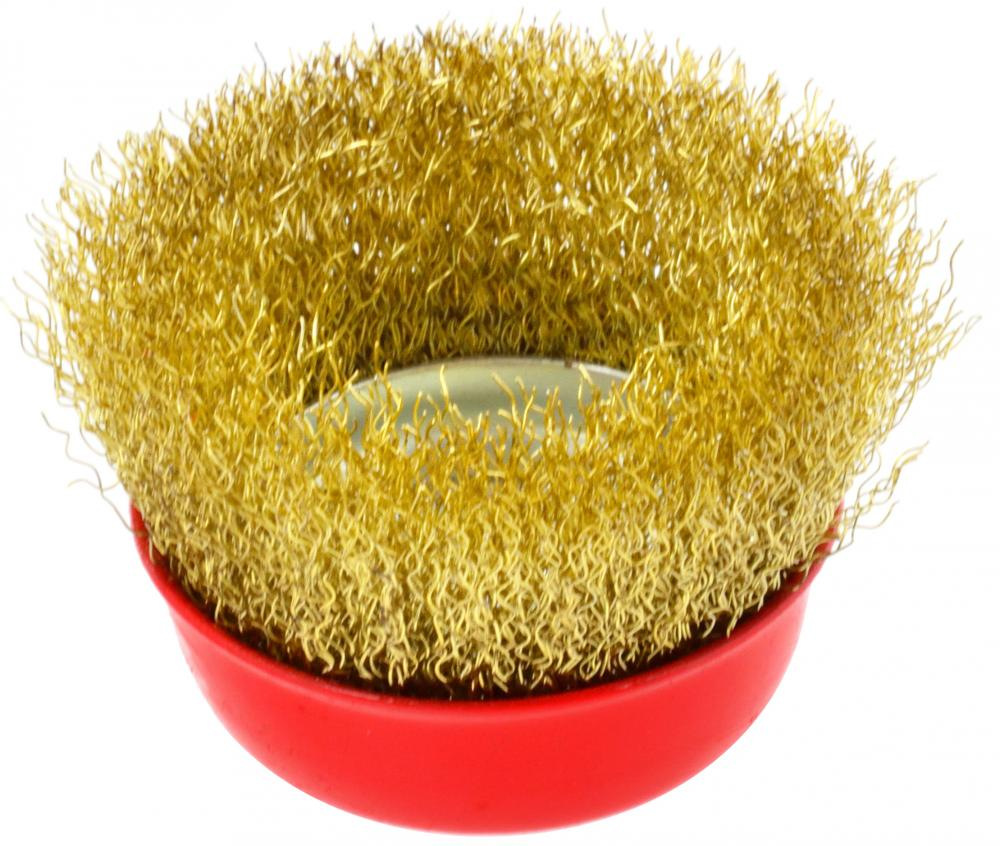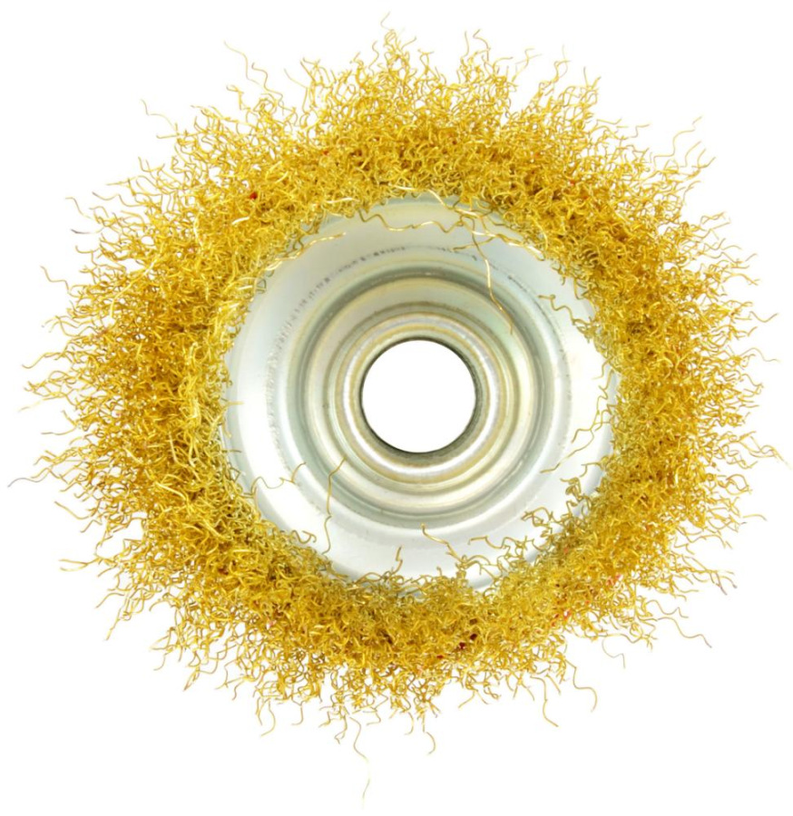 Mosadzný hrnčekový kartáč 75 mm / 3 "M14. Ideálny na renovačné práce, čistenie kovových povrchov, odstraňovanie starých farieb, lakov, hrdze, otrepov atď.