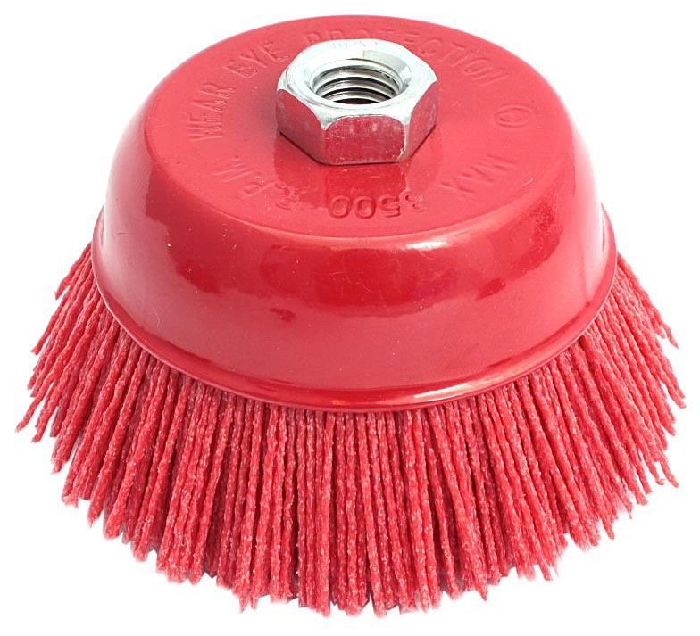 Kartáč hrnčekový nylonový 100 mm, upínanie do uhlovej brúsky, XL-TOOLS