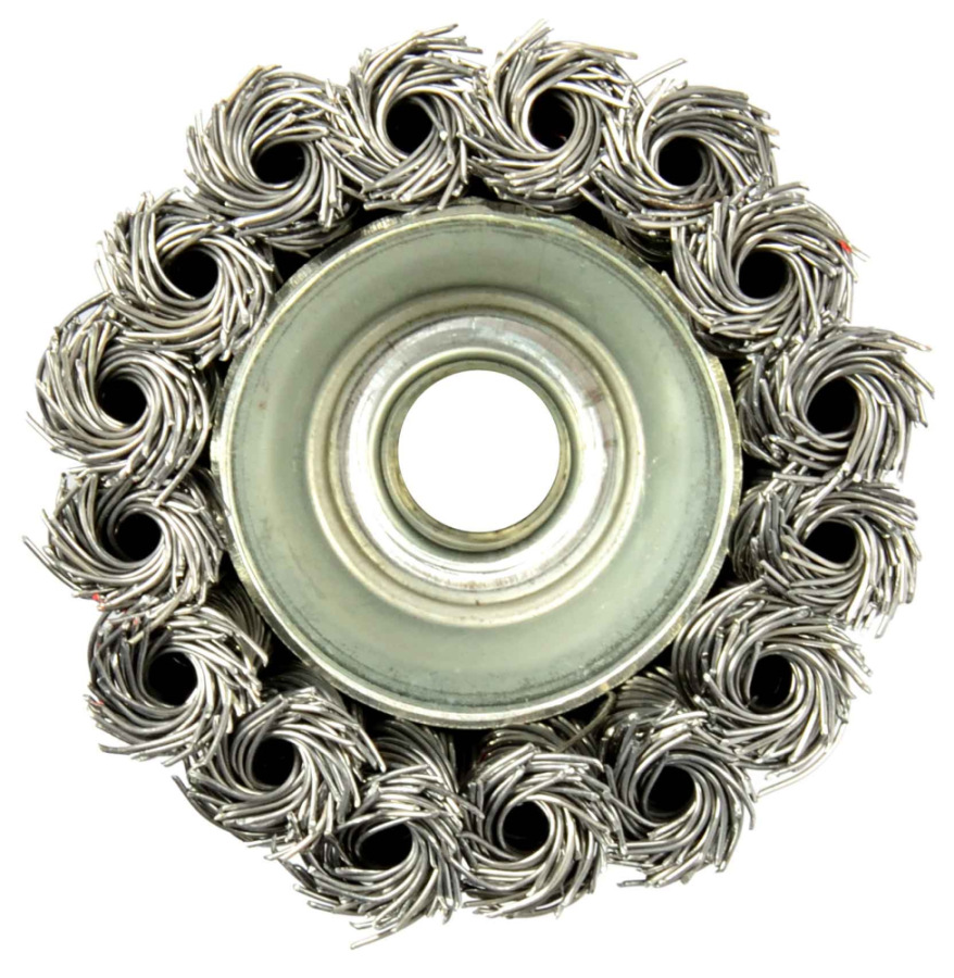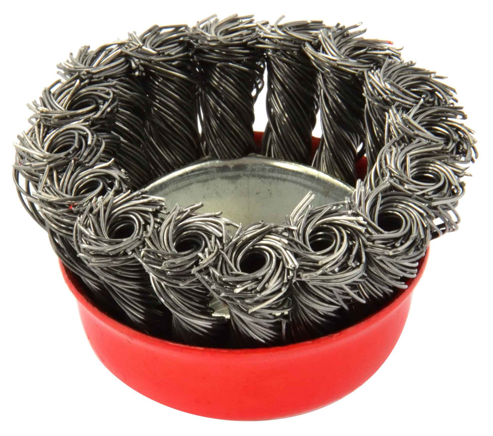 Oceľový hrnčekový kartáč vrkočový 65 mm / 3 "M14. Ideálny na renovačné práce, čistenie kovových povrchov, odstraňovanie starých farieb, lakov, hrdze, otrepov atď.