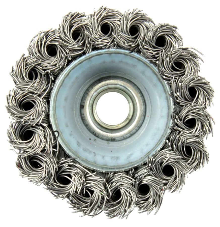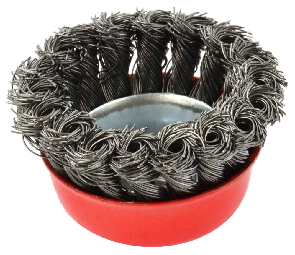 Oceľový hrnčekový kartáč vrkočový 75 mm / 3 "M14. Ideálny na renovačné práce, čistenie kovových povrchov, odstraňovanie starých farieb, lakov, hrdze, otrepov atď.