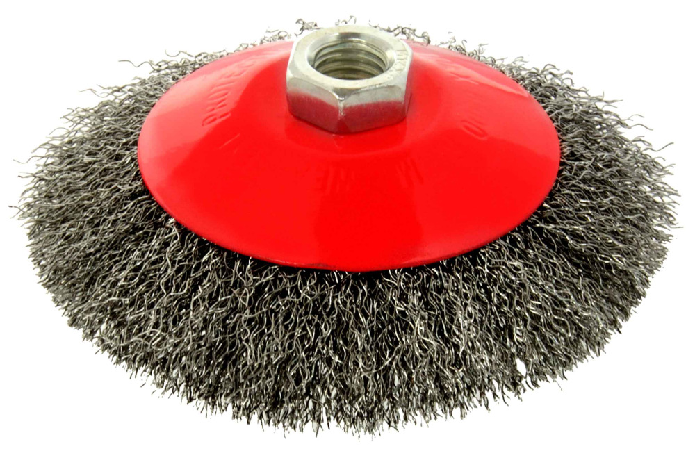 Oceľový miskový kartáč 125 mm / 3 "M14. Ideálny na renovačné práce, čistenie kovových povrchov, odstraňovanie starých farieb, lakov, hrdze, otrepov atď.
