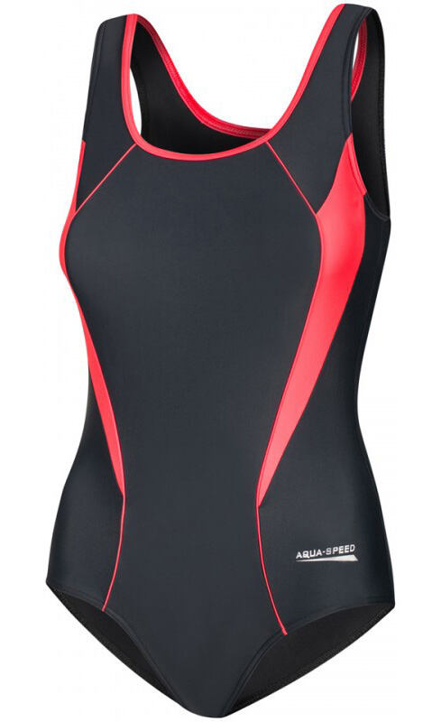 Dámske jednodielne športové plavky Aqua-Speed Kate s vertikálnym lemovaním, štýlovými farebnými panely, stredné nohavičkou, širokými ramienkami a napoly krytými chrbtom sú vyrobené z tkaniny novej generácie Newport, ktorá ponúka veľkú odolnosť voči chlóru a UV žiareniu (UPF50 +), spevňuje svalstvo, zachováva si tvar, je rychlosnoucí a je príjemná na tele. Dámske športové plavky Aqua-Speed Kate majú ideálny materiál pre časté kondičné plávanie, aj pre všetky vodné športy.