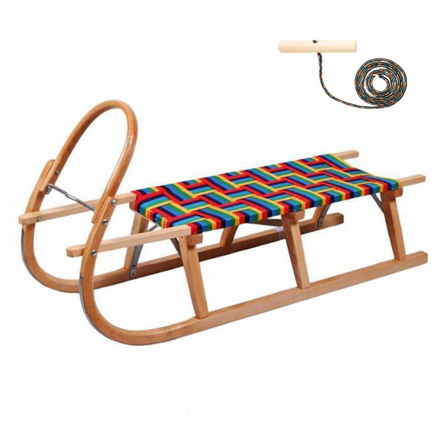 Klasické detské sánky určené pre rekreačné sánkovanie. Vyrobené z kvalitného bukového dreva sú ideálne pre každú zimnú zábavu. Sánky poskytujú dostatočný priestor pre jedno dieťa a dospelého alebo dvoch dospelých. Sedadlo je vypletané textilnými nepremokavými popruhy - farebné prevedenie sa líši podľa aktuálnej ponuky. Spodná časť je vybavená oceľovou sklznicou.