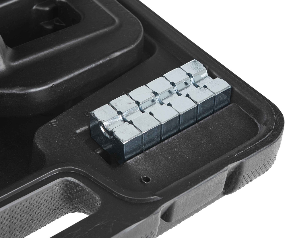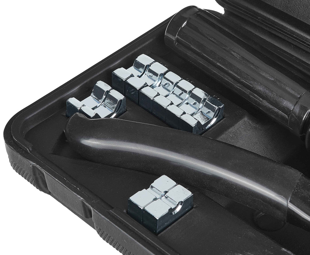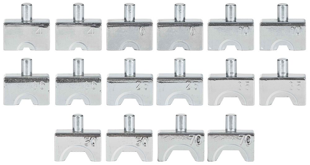 Vymeniteľné čeľuste: 14 kusov, prispôsobené rôznym priemerom drôtov (4, 6, 10, 16, 25, 35, 50, 70 mm2).