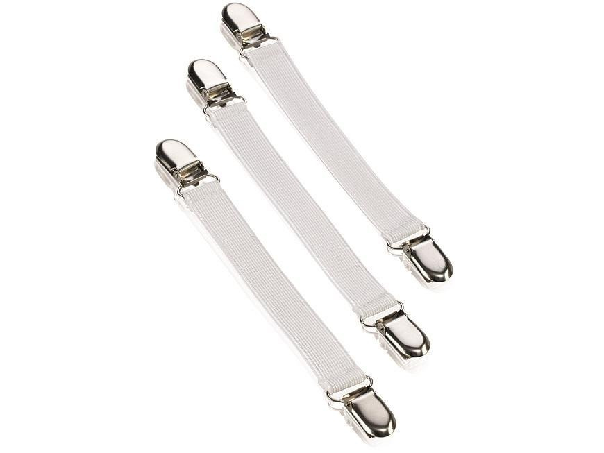 Klipy na napínanie poťahu žehliacej dosky. Rozmery: 9x2x18 cm. Farba:biela;materiál:guma/kov.