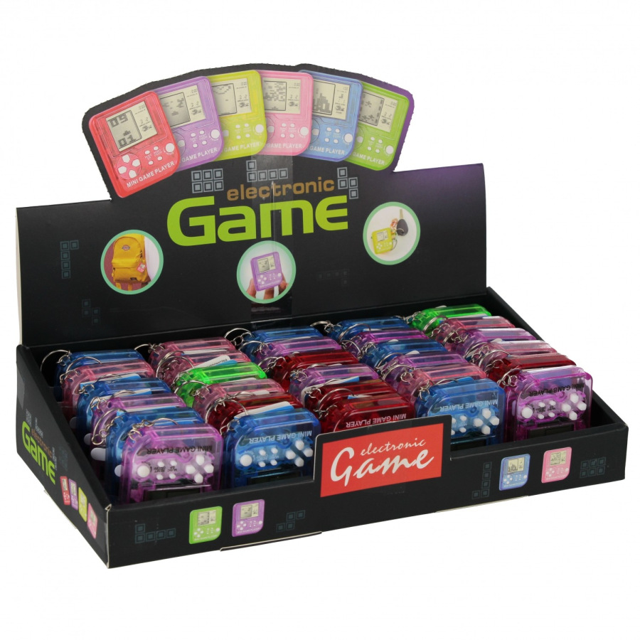 Mini elektronická hra na kľúčenku s LCD displejom. Ponúka klasické „tetris“ štýly hier, viac úrovní a jednoduché ovládanie tlačidlami. Vďaka kompaktným rozmerom sa zmestí do vrecka aj na zväzok kľúčov – skvelá spoločníčka na cestovanie. Mix farieb. Určené pre deti od 3 rokov. Cena za kus.