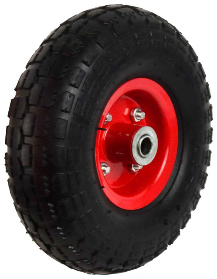 Nafukovacie koleso 2PR s maximálnym zaťažením do 136 kg. Odolný práškový lak a kovový disk poskytuje zvýšenú stabilitu. Celok je vyrobený z vysoko kvalitných materiálov.