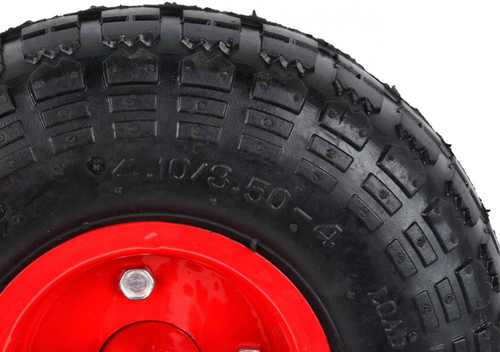 Nafukovacie koleso 2PR s maximálnym zaťažením do 136 kg. Odolný práškový lak a kovový disk poskytuje zvýšenú stabilitu. Celok je vyrobený z vysoko kvalitných materiálov.