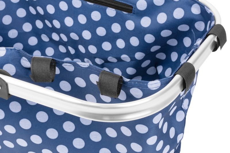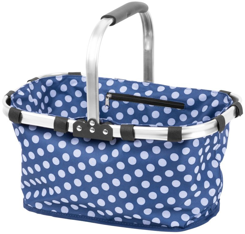 Nákupný košík Flora s krásnou modrou potlačou bude Váš pomocník pri každodenných nákupoch. Obsahuje vnútorné vrecko na zips. Po použití sa ľahko poskladá do kompaktných rozmerov, takže Vám nezaberie veľa miesta. Maximálna nosnosť : 5 kg. Rozmery: 43x23x38 cm.