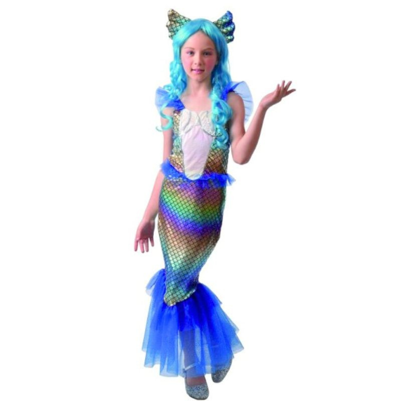 Karnevalový kostým morskej panny pre dievčatá, ideálny na karnevaly a detské oslavy. Súčasťou balenia sú šaty a ozdoba do vlasov. Určené pre deti s výškou 120–130 cm.