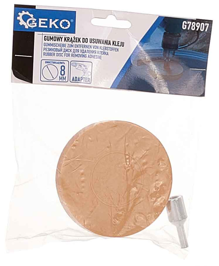 Kotúč gumový mierny, stopka 6 mm, priemer 90 mm, na odstraňovanie nálepiek a lepidla + adaptér, GEKO