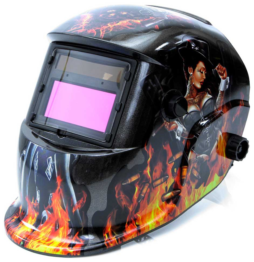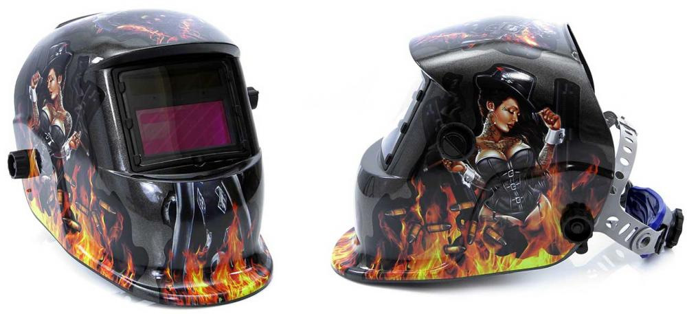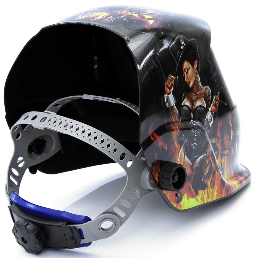 Kukla zváračska samostmievacia s nálepkou ženy v plameňoch, zorník 95 x 43 mm, MAR-POL