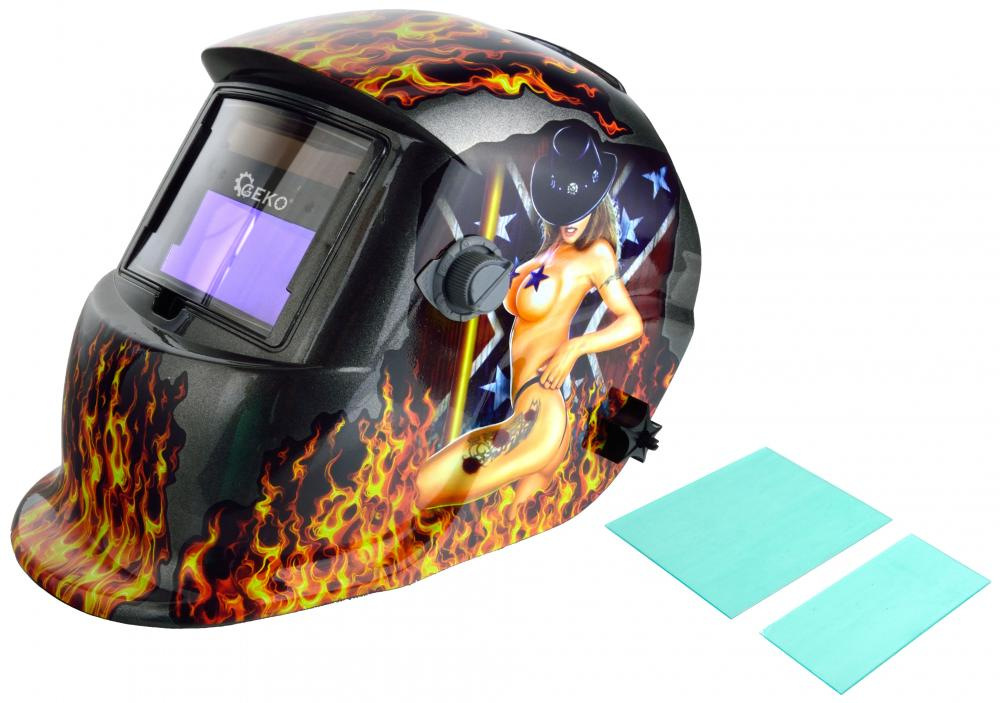 Kukla zváračska samostmievacia s nálepkou ženy, zorník 92 x 36 mm, GEKO