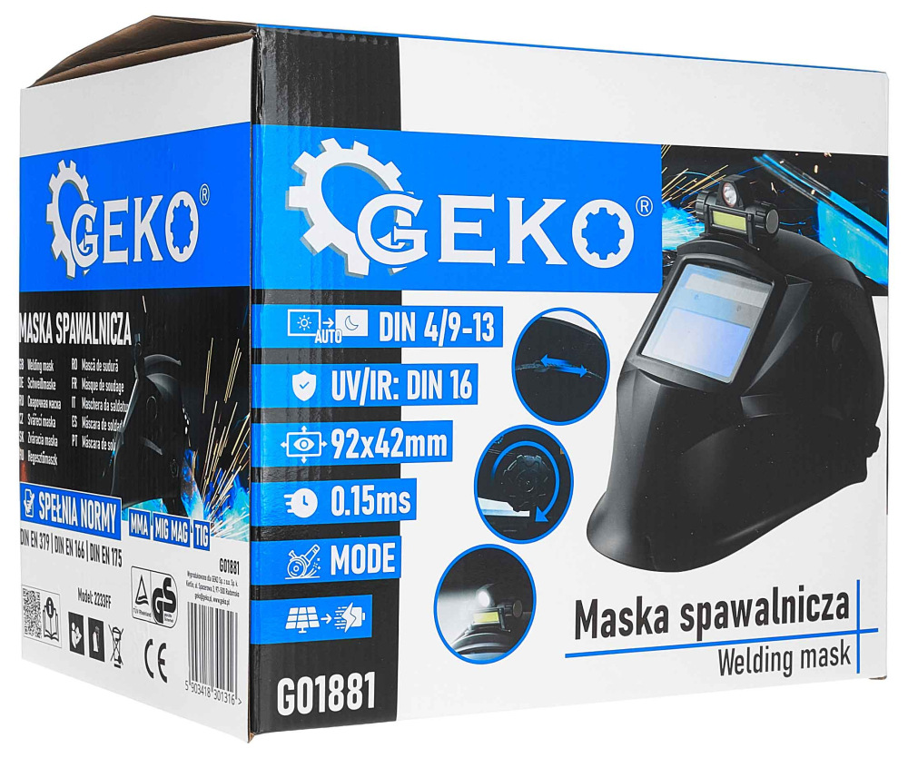 Možnosť pracovať v režime svetla (DIN 4) a rozsahu zvárania (DIN 9–13) umožňuje prispôsobiť masku rôznym metódam a prúdom. Ideálna pre presné TIG práce aj intenzívne MMA alebo MIG/MAG zváranie.