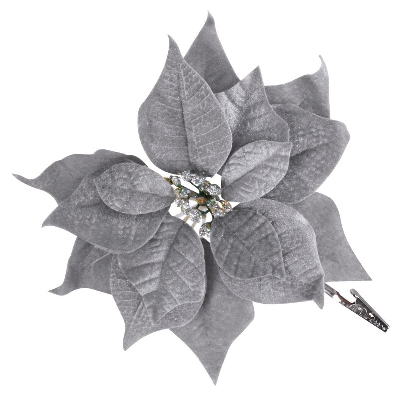 Kvet MagicHome Vianoce Poinsettia, so štipcom, strieborný, veľkosť kvetu: 25 cm, dĺžka kvetu: 26 cm
