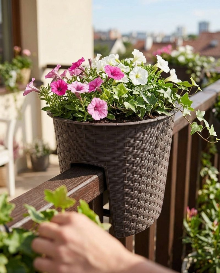 Kvetináč RATOLLA Railing Oval 300, hnedý, na zábradlie , praktického tvaru so zavesením bez háčíkov