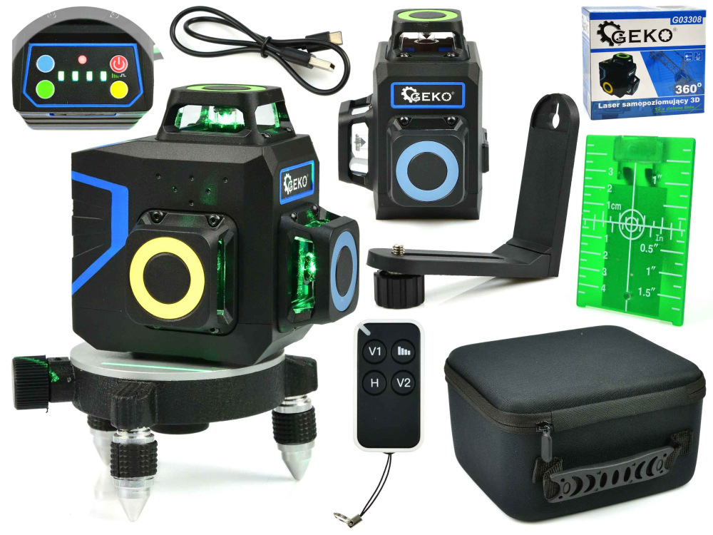 Laser krížový samonivelizačný, presnosť 1,5 mm/5m, dosah 30 m, 360°, 12 lúčov, GEKO
