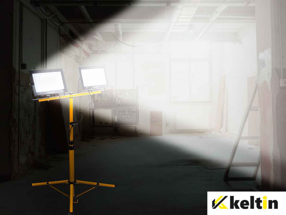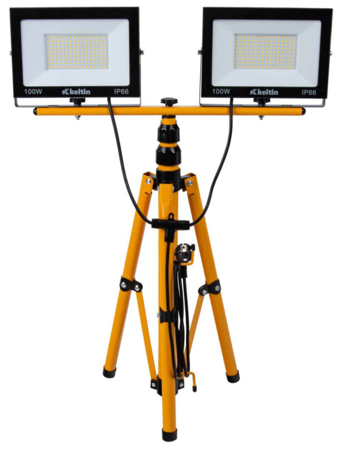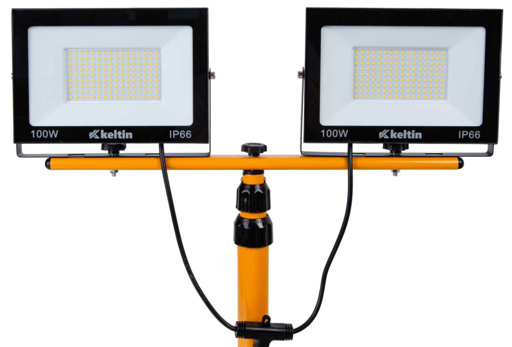 LED reflektor 2x100W s teleskopickým stojanom, studená biela 6500K, KELTIN