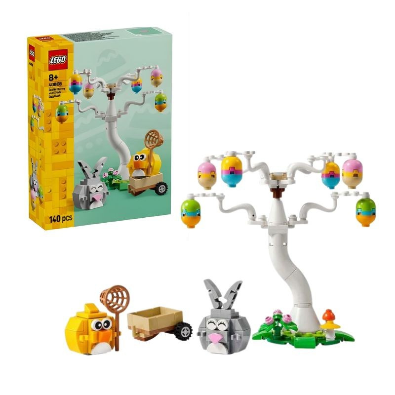 Zostavte si strom, auto, vtáčika a zajačika LEGO, potom postavte farebné vajíčka a pripevnite ich na vetve, aby ich zvieratá mohli nájsť. Pomôžte kuriatku a zajačikovi zbierať vajcia pomocou sieťky a uložte ich do kočíka.