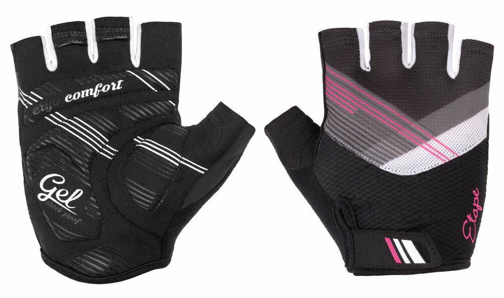 Cyklistické rukavice patrí do základného vybavenia každého správneho cyklisty. Jednak pri páde chráni dlane proti odretiu, zvyšujú celkový komfort pri jazde a slúži zároveň aj ako módny doplnok k vášmu cyklistickému oblečenia. Krátkoprsté rukavice na bicykel Etape Liana majú chrbát z elastického a vzdušného materiálu pre výbornú ventiláciu a pohodlie, dlaň s gélovou výstelkou GelPro (zaisťuje maximálnu ochranu ruky pred otrasmi, vibráciami a chráni ruku v prípade pádu z bicykla) a protišmykovou úpravou, silikónová oka TakeOff pre ľahké vyzliekanie z rúk, antibakteriálne froté na palci pre utieranie potu a jednoduché zapínanie na suchý zips.