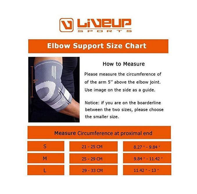 Elastická bandáž lakťa LiveUp LS5673 poskytuje rovnomernú podporu lakťa a blízkeho predlaktia pri všetkej fyzickej záťaži. Elastický pás na lakeť LiveUp LS5673 je priedušná, veľmi pohodlná, nebráni v pohybe, nezhrňuje sa a je vhodná na nosenie po celý deň. Bandáž LiveUp LS5673 veľkostne zodpovedá obvodu lakťa 20,3-31,1 cm (S-M) alebo 31,1-40 cm (L-XL) a možno ju použiť na obe ruky. Zloženie: 35% polyester, 35% nylon, 30% guma.