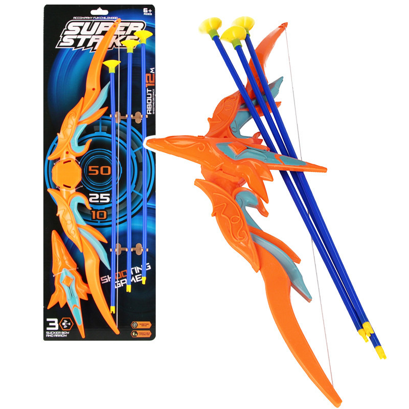 Luk a šípy, má rozmery 27X37X5 cm. Obsah sady je luk, 3 šípy, 1 tulec. Cena je za sadu. Vhodné pre deti vo veku 3+ rokov.