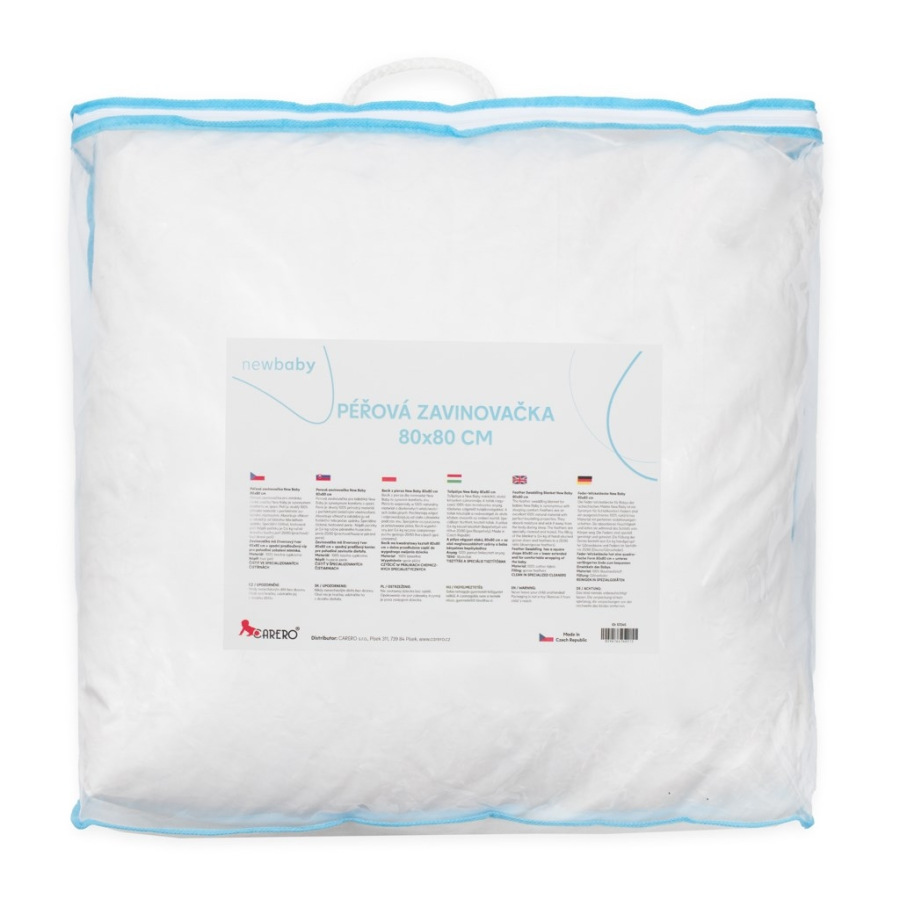 Luxusná páperová zavinovačka Dráček 80x80 cm New Baby. Táto luxusná páperová zavinovačka je synonymom pohodlia pri spánku. Zavinovačka poskytuje bábätku mäkký, teplý a bezpečný pocit podobný prostrediu v maminom brušku, čo pomáha dieťaťu prispôsobiť sa novým podmienkam. Vďaka vynikajúcim vlastnostiam peria zaisťuje zavinovačka stabilnú teplotu. Perie absorbuje vlhkosť a odvádza ju od tela počas spánku. Použité je špeciálne čistené a testované perie. Naše zavinovačky obsahujú 80 % draného husacieho peria a 20 % páperia (0,4kg). Dodávame v praktickej taške na zips, ktorú môžete využiť aj na uskladnenie rôznych vecí doma.