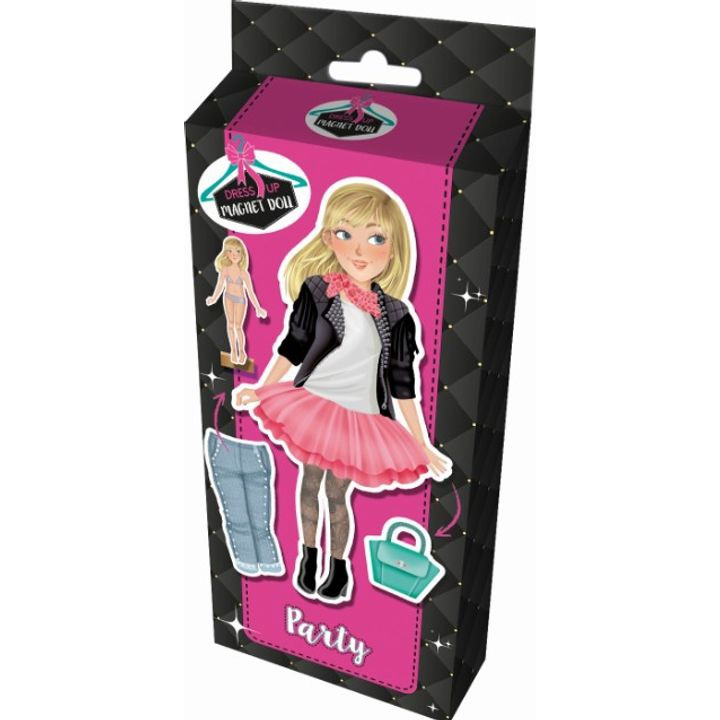 Balenie obsahuje obliekaciu bábiku, 30 magnetických častí (oblečenie, topánky, doplnky) a drevený podstavec, vďaka ktorému možno vytvoriť nespočetne veľa módnych kreácií.