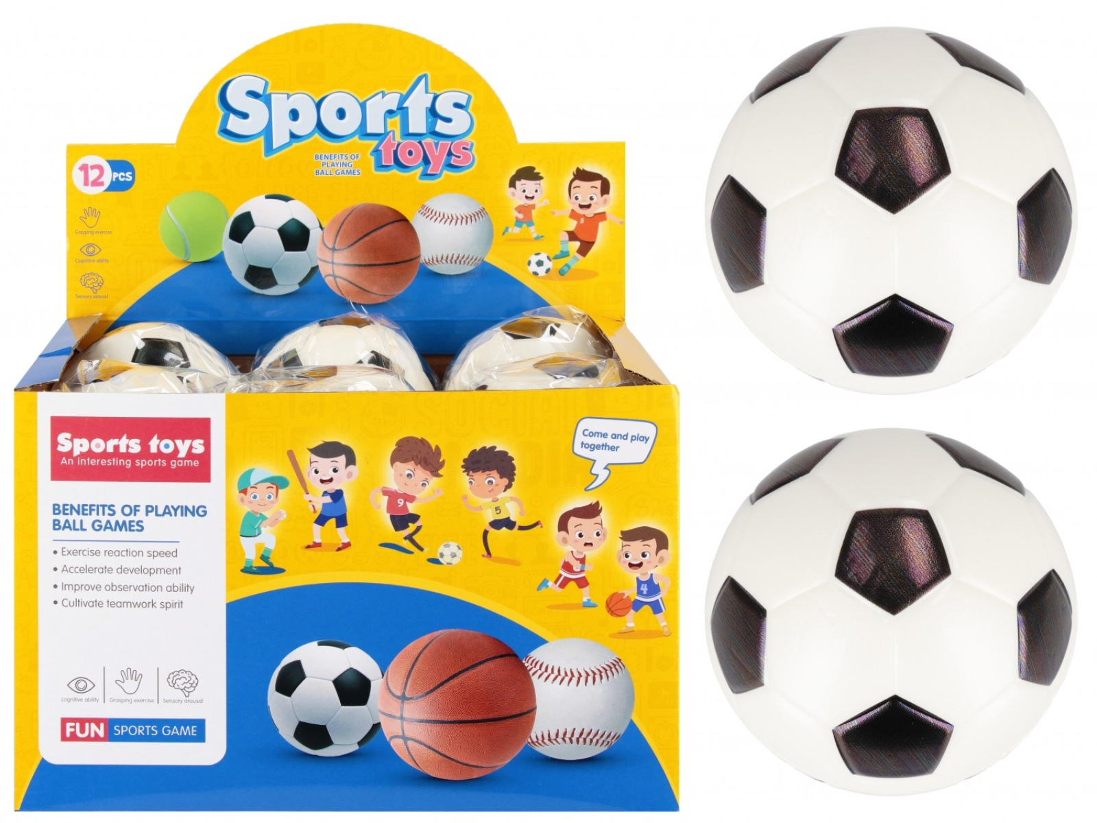 Mäkká futbalová lopta s priemerom 10 cm v klasickom čierno-bielom dizajne je ľahká, bezpečná a ideálna na hru doma aj vonku. Podporuje pohyb a rozvíja koordináciu. Vyrobená z peny EVA. Určené pre deti od 3 rokov. Cena za kus.