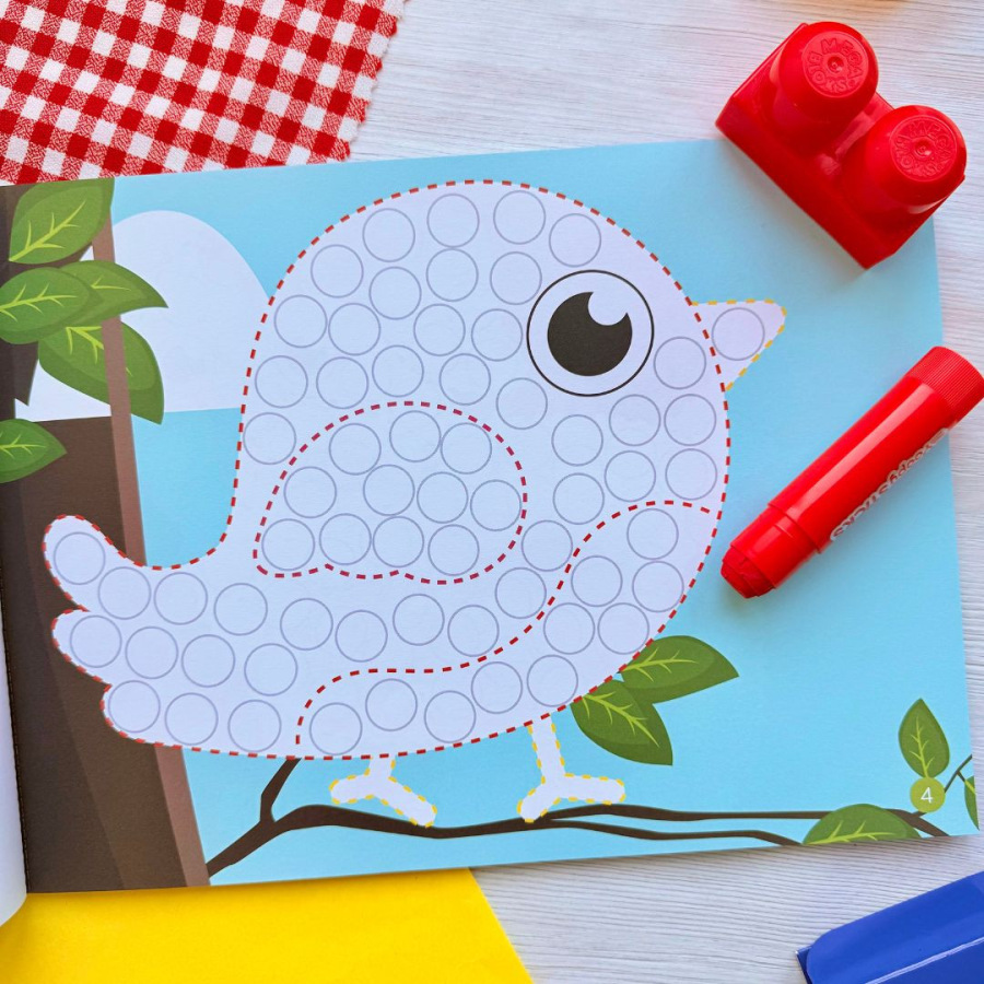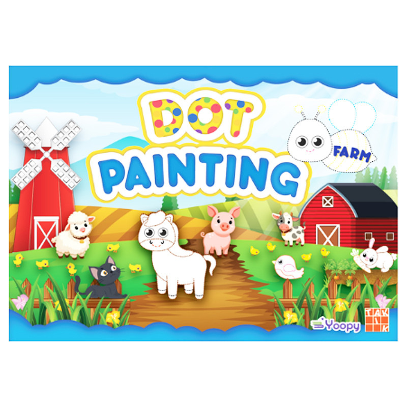 Maľuj bodkami Farma, Na každom liste sa nachádza jeden obrázok tvorený prerušovanými čiarami, ktorý je sčasti alebo úplne vyplnený obrysovými krúžkami – bodkami. Úlohou malých umelcov je dokresliť obrázok spojením prerušovaných čiar a následne ho vymaľovať ,,bodkovaním”. Cena je za kus. Vhodné pre deti vo veku 3+ rokov.