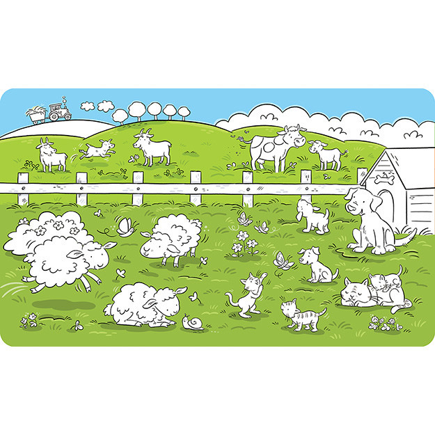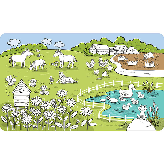 Maľuj vodou zas a znovu Farma, obsahuje 10 krásne farebných strán s obrázkami. Po aplikácii vody sa farba objaví a po zaschnutí opäť zmizne, obrázky je možné vďaka tomu maľovať opakovane. Pero na vodu je súčasťou balenia. Má rozmery 265 X 223 mm. Cena je za kus. Vhodné pre deti vo veku 3+ rokov.