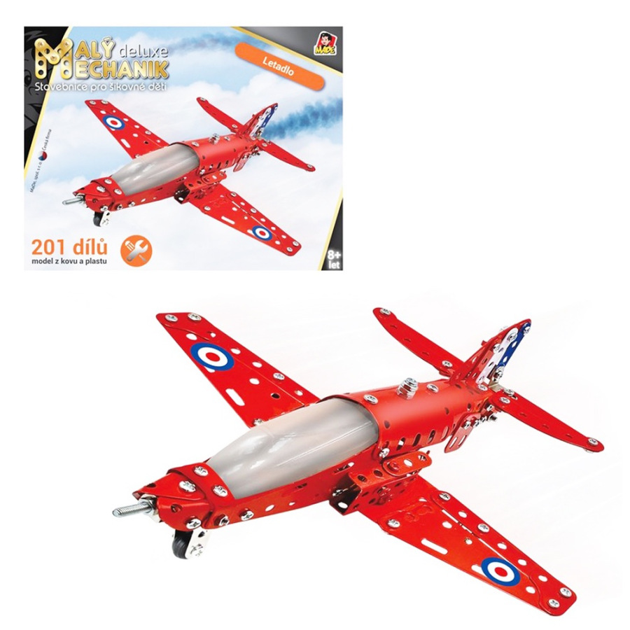 Malý mechanik - lietadlo. Detská stavebnica Malý mechanik obsahuje kovové diely a plastové doplnky, spája sa pomocou skrutiek a matičiek. 201 dielikov. Český box v grafickom dizajne radu Malý mechanik. Rozmer: 25 x 25 x 11 cm. Doporučený vek: 6 +
