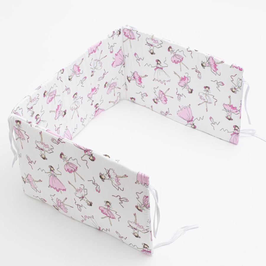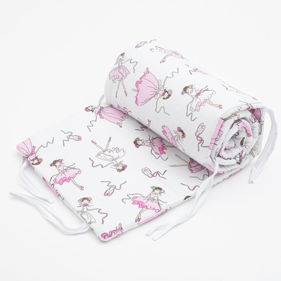 Praktický mantinel do postieľky New Baby Ballerina Bella s potlačou tancujúcej baletky. Je vyrobený z mäkkého, príjemného materiálu. Zloženie: 100% bavlna. Výplň: 100% polyester. Upevnenie k postieľke za pomocou stúh. Rozmer: cca 150 cm.