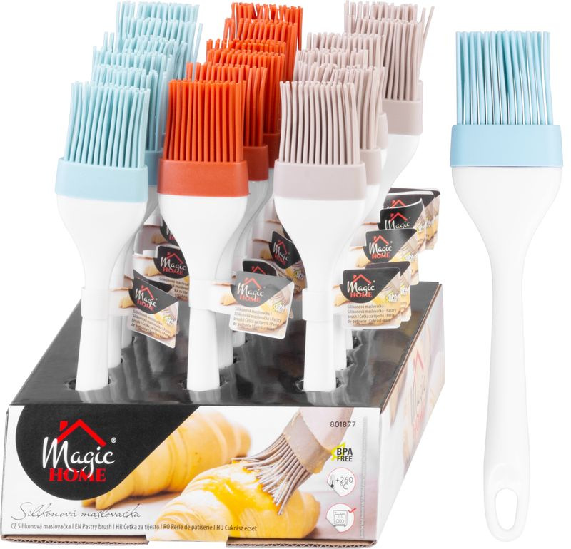 Vynikajúca maslovačka MagicHome na potieranie pokrmov. Odolnosť do +260 °C. Vhodná do umývačky riadov. Sellbox obsahuje 18 ks maslovačiek v troch farbách: hnedá, oranžová a mentolová.