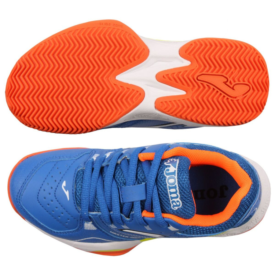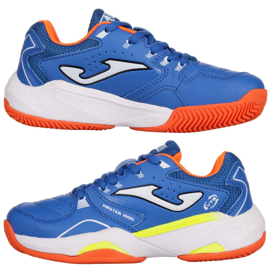 Detské tenisové topánky JOMA Master 1000 JR sú vhodné pre začínajúcich a rekreačných mladých hráčov a hráčky. Topánka je navrhnutá pre antukové kurty a padiel. Táto obuv poskytuje výnimočne dobré odpruženie, ochranu a pohodlie. Topánky sú vyrobené prevažne z pružného a odolného syntetického materiálu PU s perforáciou VTS umiestnenou na strategických miestach umožňujúce odvetrávanie potu. Časť členku a jazyka je z polstrovaného nylonu zlepšujúceho prispôsobenie a prispôsobenie spolu so šnurovaním PERFECT FIT. Medzipodrážka je vyrobená z ľahkého a pružného phylonu na tlmenie nárazov. Podrážka je vyrobená z gumy DURABILITY, ktorá sa vyznačuje skvelou trakciou a je vysoko odolná proti oderu. UK 12.5K - EU 31 - JP 19