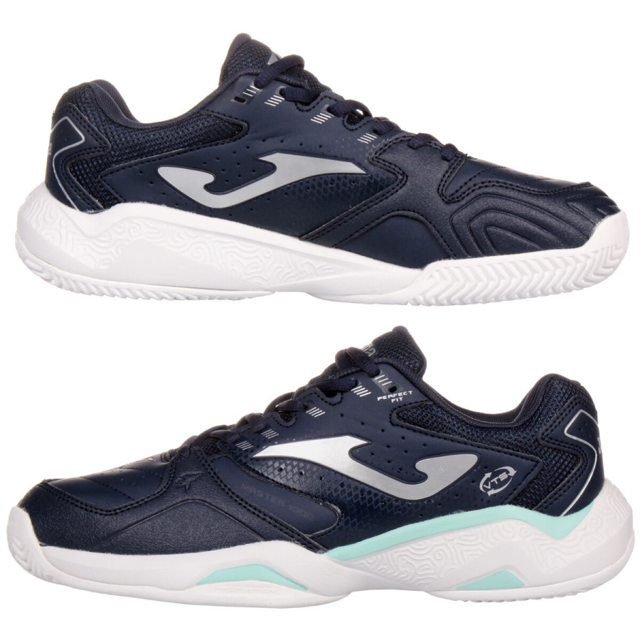 Tenisové topánky Joma Master 1000 Men 2603 sú určené pre začínajúcich a rekreačných hráčov, ktorí trénujú na antukových kurtoch. Táto obuv poskytuje výnimočne dobré odpruženie, ochranu a pohodlie. Topánky sú vyrobené prevažne z pružného a odolného syntetického materiálu PU s perforáciou VTS umiestnenou na strategických miestach tak, aby topánky poskytovali čo najlepšie odvetrávanie. Časť členku a jazyka je z polstrovaného nylonu a spolu so šnurovaním PERFECT FIT tak topánky ponúkajú čo najlepšie prispôsobenie sa nohe. Medzipodrážka je vyrobená z ľahkého, pružného phylonu na tlmenie nárazov, so zvýšenou výškou na bočnej strane pomocou technológie PROTECTION. Podrážka z antukovej gumy DURABILITY je určená pre hru na antukových alebo padelových kurtoch. Vyznačuje sa vynikajúcou trakciou pre čo najrýchlejší pohyb počas hry.