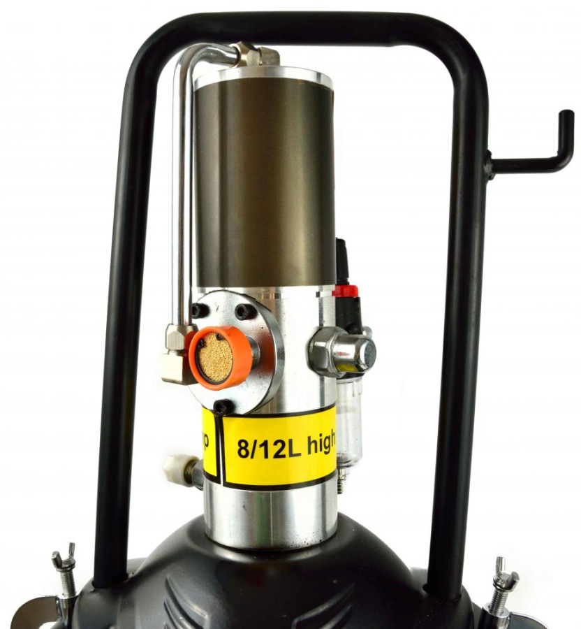 Mazací lis je vybavený pneumatickým čerpadlom, ktoré je možné pripojiť priamo ku kompresoru.
