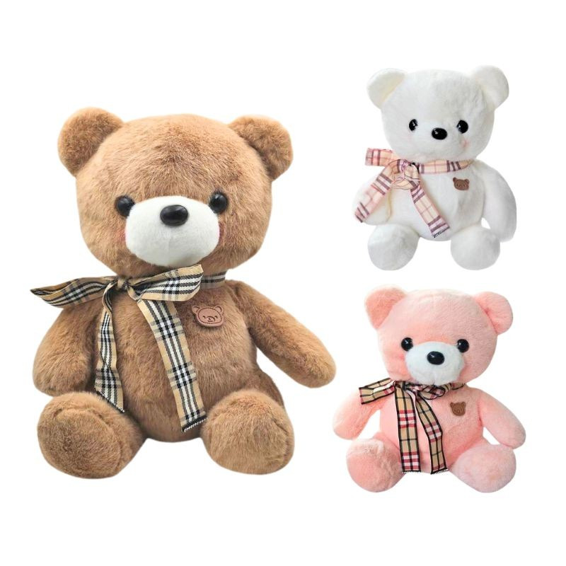 Klasický plyšový medvedík sediaci s mašľou je nadčasový darček z lásky. Mäkké prevedenie a milý vzhľad ho robia obľúbeným u detí. Možnosť výberu z troch farieb.