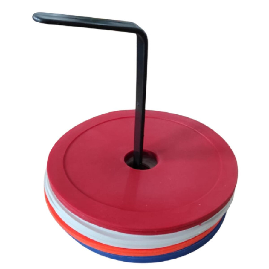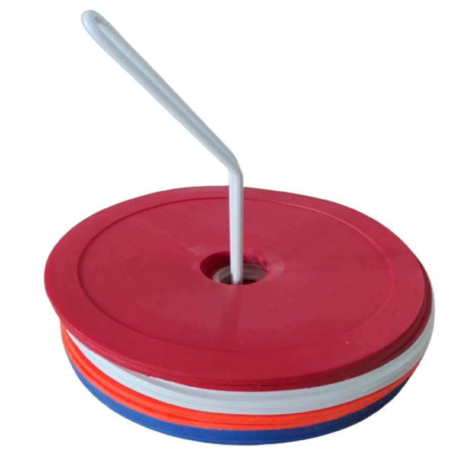 Sada 16tich kusov značiek na podlahu Ring vrátane stojanu pre jednoduché prenášanie a uskladnenie. Značka na podlahu Ring je praktická tréningová pomôcka, vďaka ktorej tréner počas chvíľky vytvorí agility dráhu či ohraničenie cvičebnej zóny. Značka na podlahu v tvare kruhu je vyrobená z termoplastickej gumy (TPR), ktorá vyniká svojou odolnosťou a značka je tak vhodná na vonkajšie tréningy aj do telocviční. Značka Ring má celkový priemer 15 cm, priemer vnútorného otvoru 2,5 cm a jej hmotnosť je približne 50 g. Obrázok je iba ilustratívny, farby značiek sa môžu líšiť!