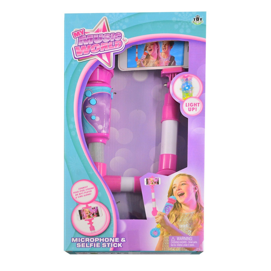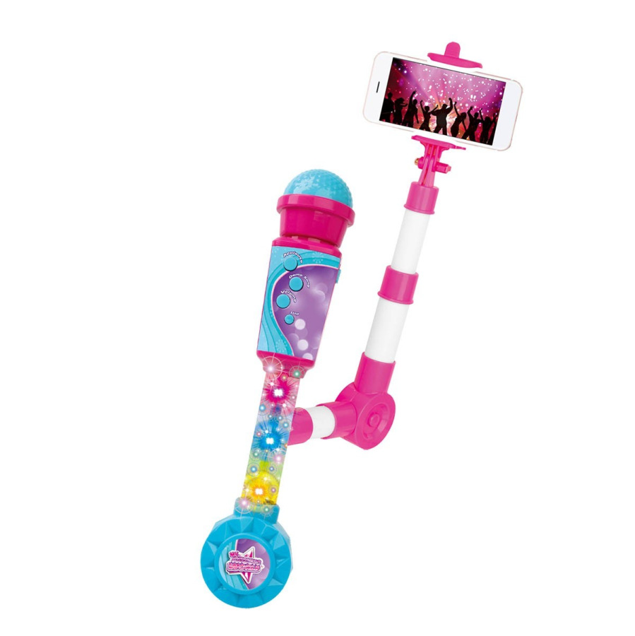 Mikrofón na batérie so svetelnými efektmi. Skvelá zábava na dlhé hodiny. K mikrofónu je možné pripojiť externé zariadenie pomocou priloženého kábla s 3,5 mm Jack MP3 prehrávač alebo chytrý telefón a dieťa môže spievať so svojou obľúbenou hviezdou. Súčasťou balenia je aj selfie tyčka, na ktorú je možné pripevniť mobilný telefón a pri spievaní sa aj natočiť na video.