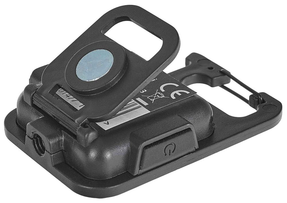 - Silný magnet v základni umožňuje jednoduché pripevnenie baterky na kovové povrchy a kĺbový dizajn umožňuje presné nastavenie uhla svetla.