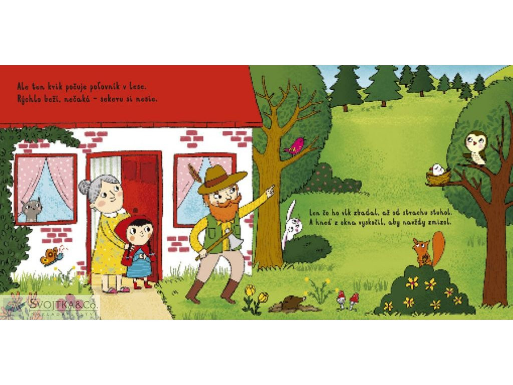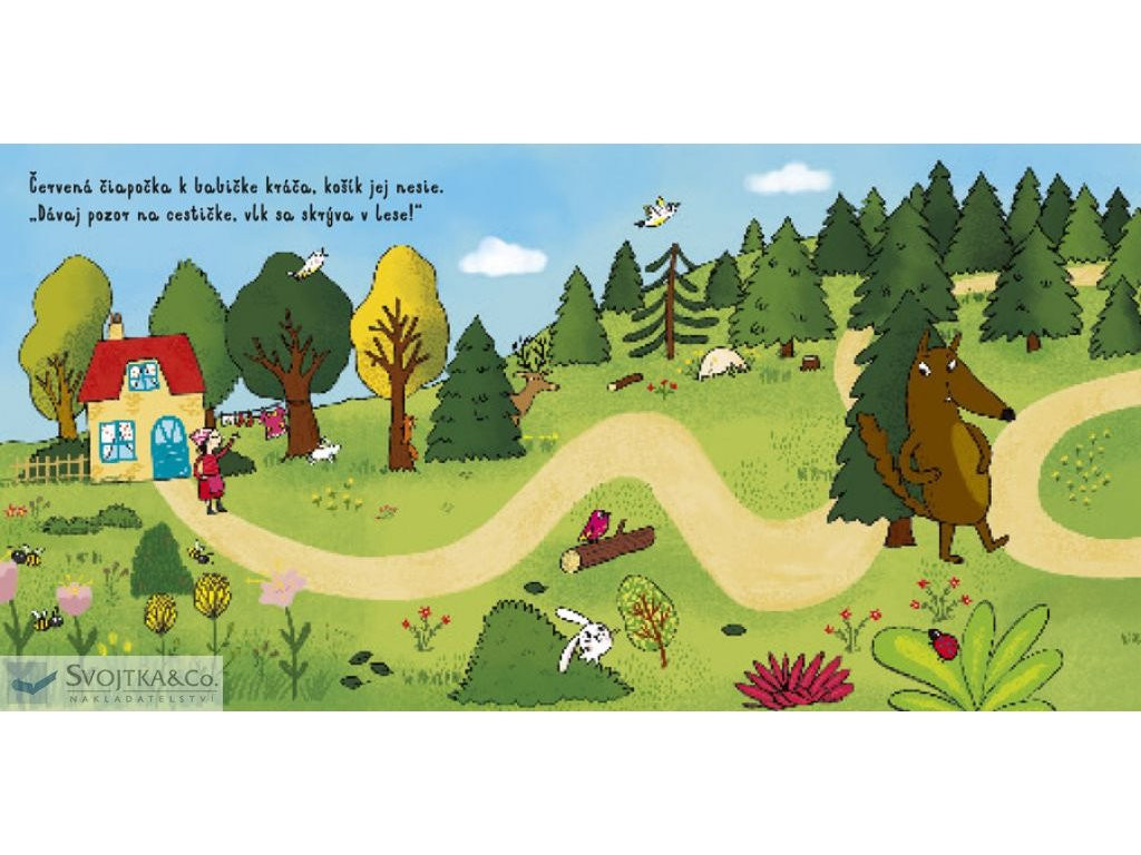 Minirozprávky - Červená čiapočka, leporelo s pevnými stránkami a pohyblivými obrázkami je určené deťom od jedného roka nájdete v ňom krátku veršovanú rozprávku o Červenej čiapočke a vlkovi. Má 10 strán. Rozmery produktu sú 18x18cm.