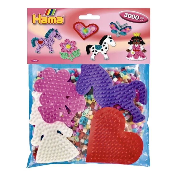 Pomôcka na precvičenie fantázie, zručnosti, trpezlivosti, rozoznávania tvarov a farieb, motoriky atď. Deti ani netušia, že robia niečo viac ako že sa len hrajú. Balenie obsahuje 3000ks zažehľovacích korálikov, 4 podložky malé srdce, koník, kytička, princezná s korunkou, farebne tlačená predloha, zažehľovací papier, návod na použitie. Rozmer balenia je 18 x 22 x 5cm. Priemer korálky je 0,5cm. Vhodné pre deti od veku 5+.