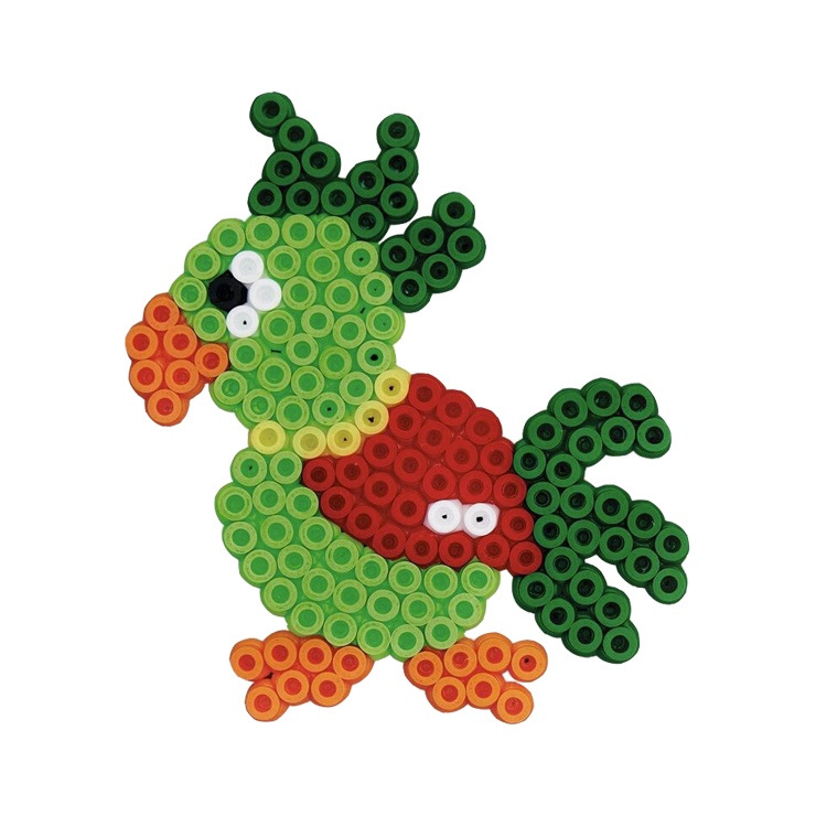 Pomôcka na precvičenie fantázie, zručnosti, trpezlivosti, rozoznávania tvarov a farieb, motoriky atď. Deti ani netušia, že robia niečo viac ako že sa len hrajú. Balenie obsahuje 3000ks zažehľovacích korálikov, 4 podložky malý šesťuholník, sloník, papagáj, psík, farebne tlačená predloha, zažehľovací papier, návod na použitie.Rozmer balenia je 18 x 22 x 5cm. Priemer korálky je 0,5cm. Vhodné pre deti od veku 5+.