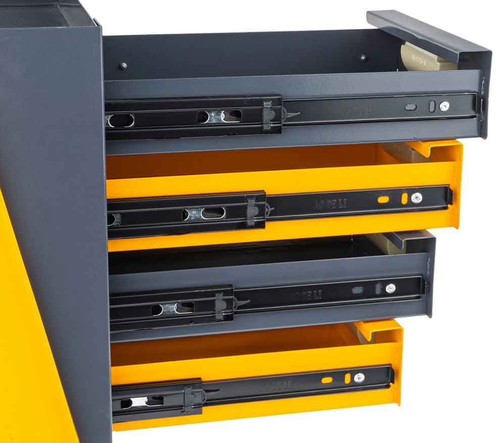 Vozík je vybavený štyrmi zásuvkami, ktoré umožňujú efektívne riadenie pracovného priestoru . Toto riešenie poskytuje zváračovi rýchly a jednoduchý prístup ku všetkým potrebným nástrojom a príslušenstvu, čo sa premieta do zvýšenej efektivity práce .